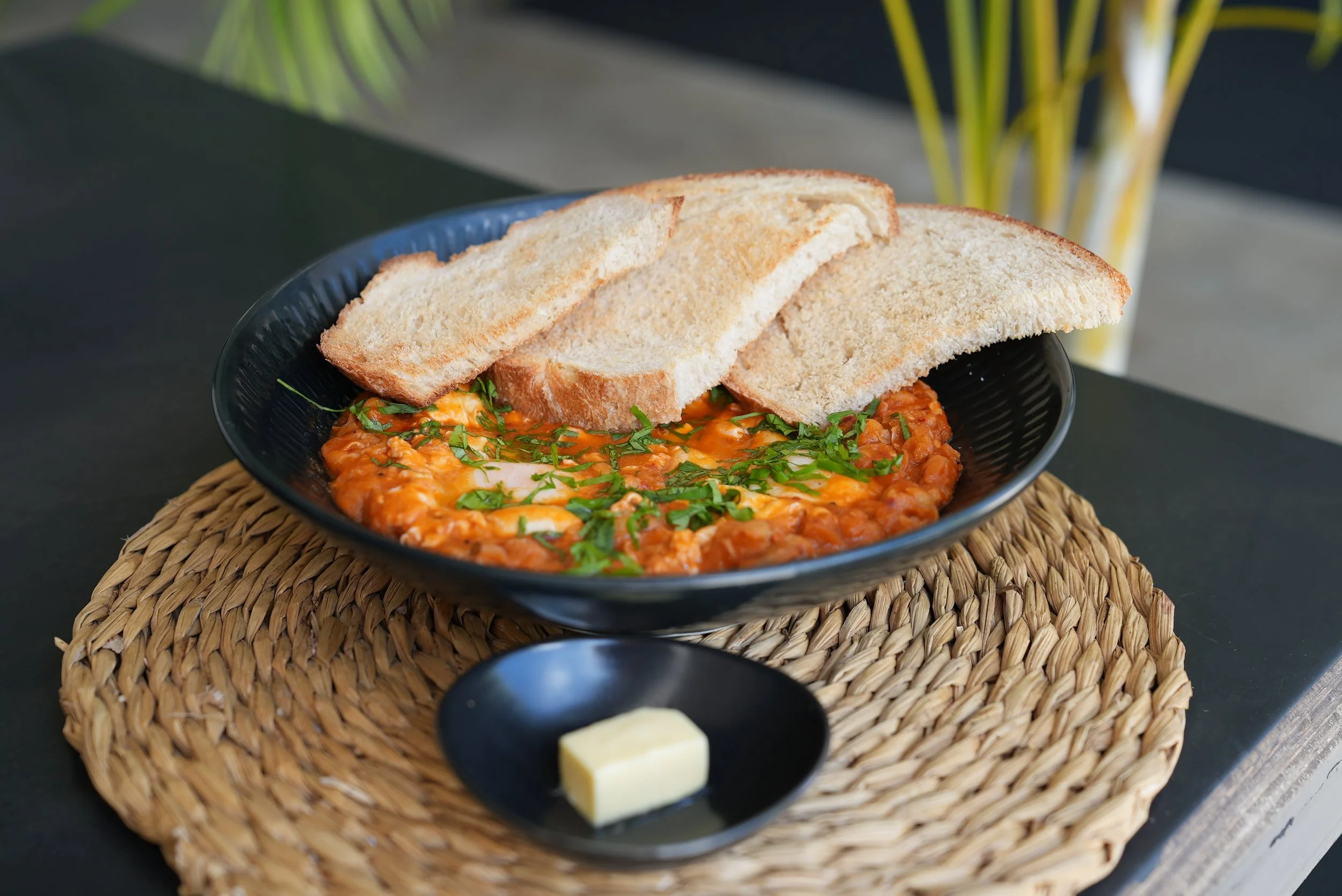 • Spiced Moroccan Eggs with Chickpeas & Sourdough